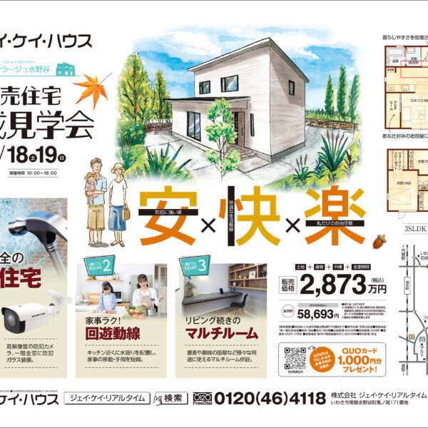 いわき市鹿島町でモデルハウスの見学が出来ます。ジェイケイハウスのお家をぜひご体感ください。